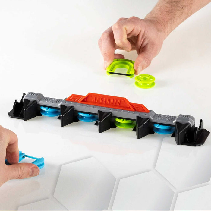 Get ready for fast-paced fun with the Magshuto Knockout Rail! Each player gets a launcher and five Mag-Pods to shoot into four rail slots. Knock out your opponent’s pods and claim the slots to win. Perfect for 1 or 2 players, this game sharpens hand-eye coordination, spatial reasoning, and quick reflexes. Combine with Stunt Park and Mag-Kits for even more trick-shot excitement. Become a Trick Shot Master and let the magnetic battles begin!