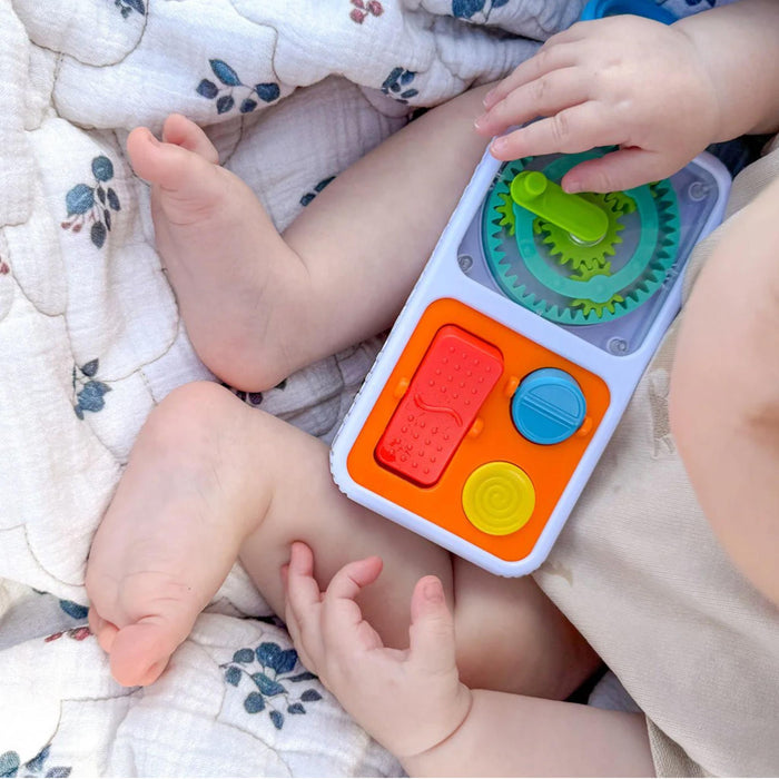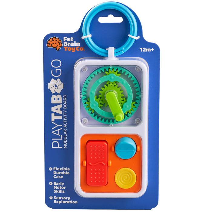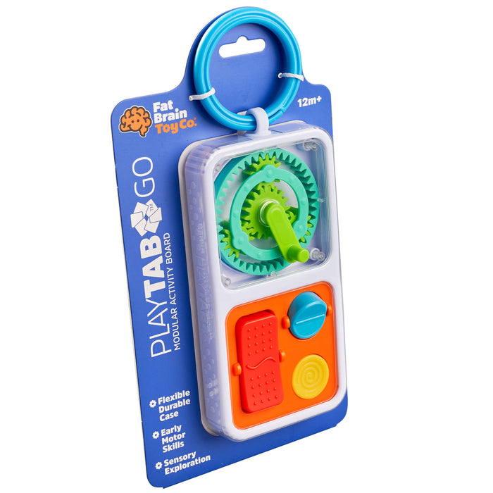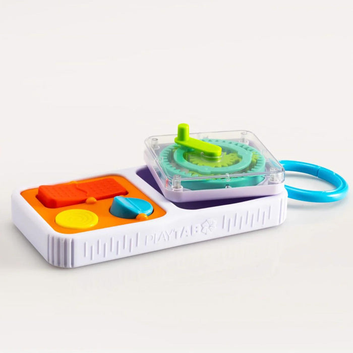 Take the fun of PlayTab wherever you go with PlayTab Go! This travel-friendly activity board includes two sensory tiles that pop in and out of a flexible, durable case. Swap tiles anytime to keep playtime fresh and exciting. The handy clip lets you attach it to car seats, strollers, or bags, making it perfect for on-the-go fun. PlayTab Go sparks sensory learning, fine motor skills, and cause-effect discovery wherever your adventures take you!